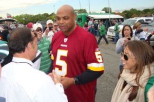 Charles Barkley made his way to Lincoln Financial Field on Sunday to watch Redskins and Eagles. As you can tell from the picture, he was not there to support the combo of Michael Vick and Kevin Kolb. Credit for this photo goes to The 700 Level.