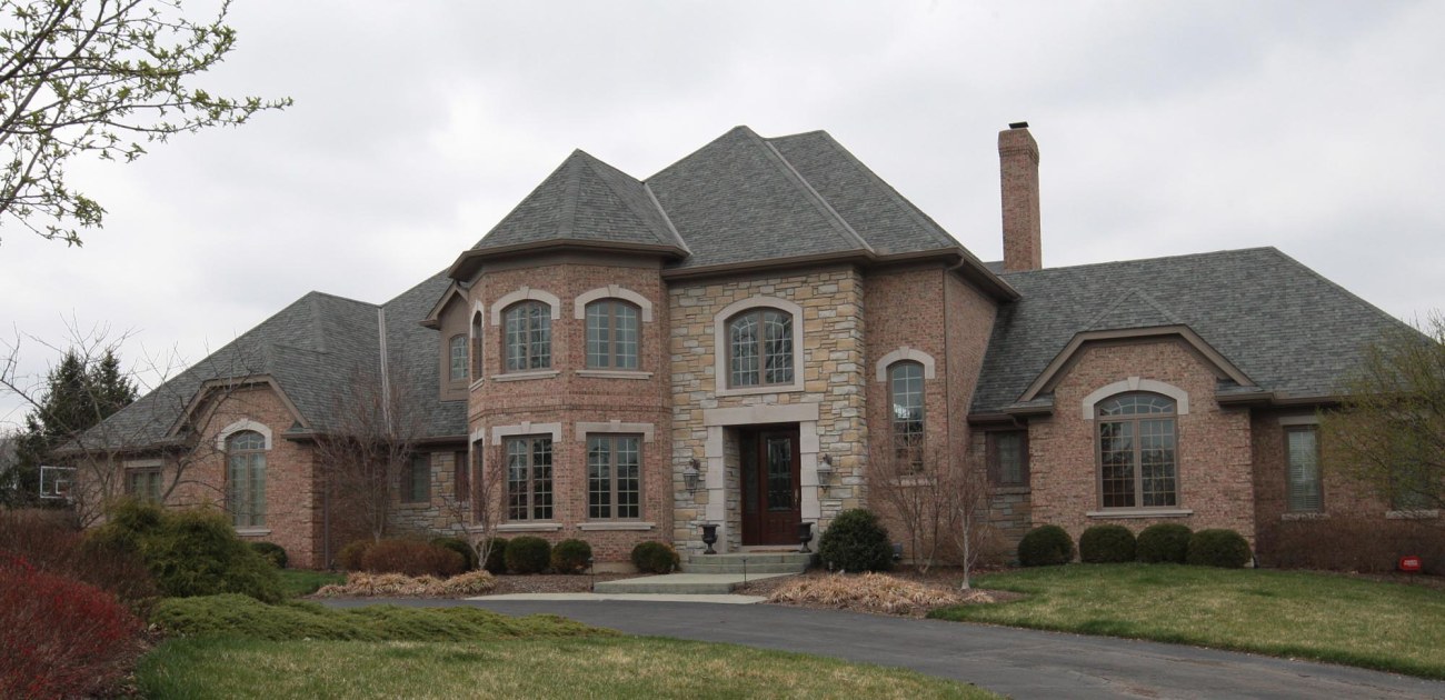 The two-story, five acre home comes with 15 rooms, five bathrooms, pool, spa, golf green, and a full basement.