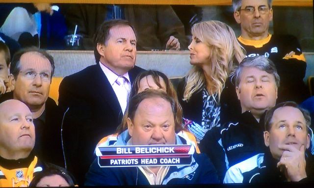 During Game 5 of the NHL’s Eastern Conference Finals between the Tampa Bay Lightning and Boston Bruins, Bill Belichick was shown on the Jumbo Tron as the “Fan of the Game.”