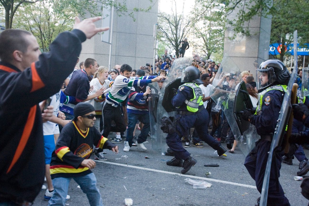 I did some “investigative journalism” (ha!) prior to my post about the postgame show in Vancouver and it turns out the city should not have been that unaware things might go south. They had a near riot during the Winter Olympics that went underreported and, in fact, one of the stores they targeted last night is some kind of symbol of oppression to a select few folks out there and was “hit up” last February. Sounds to me like the Vancouver police were negligent to let that “outdoor festival” get organized in the first place.