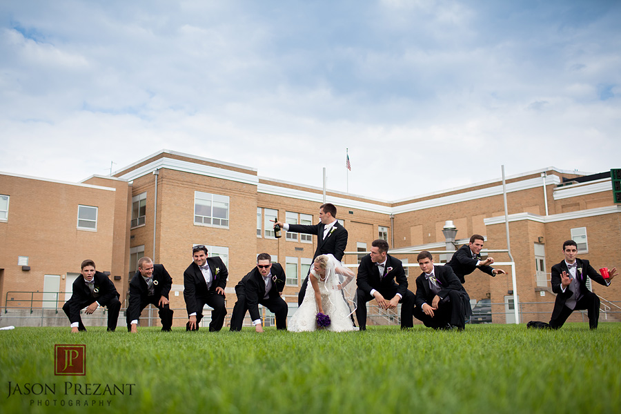 This photo should be required of all bridal parties. Next time, the girls need to get in there to provide some formation diversity.