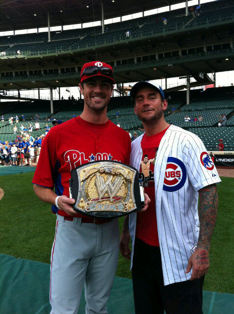 The above photo features Punk and another man who knows something about being a champion…Colbert Michael Hamels.