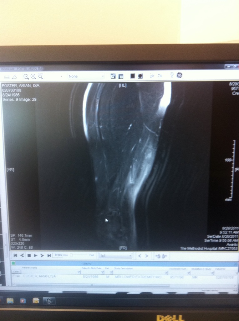 This is an MRI of my hamstring, The white stuff surrounding the muscle is known in the medical world as anti-awesomeness.