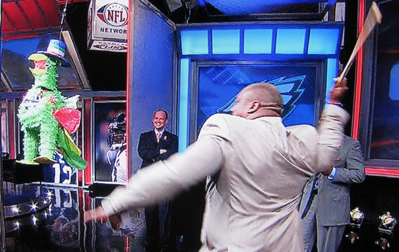 The segment concluded with former Eagles adversaries Warren Sapp and Marshall Faulk beating up on an Eagles piñata aptly named “Rocky”.