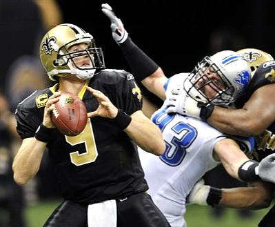 Saints 45, Lions 28: For a time, it appeared that the Lions would be able to keep matters under control at the Superdome. Detroit led 14-7 in the second quarter but a barrage of Saints offense, including 466 yards passing from Drew Brees, propelled New Orleans to a 17-point victory.