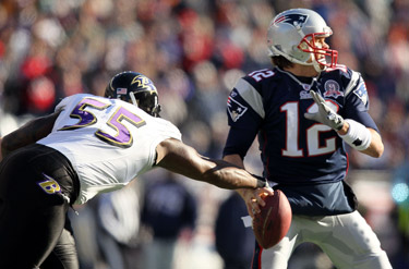 5. Mr. Brady’s Pocket – Well, this is the game. If Brady is allowed to setup shop as he did last week and so many times this season, Baltimore’s chances of winning are slim. As we’ve heard many times before, the key to knocking Brady off stride (or most quarterbacks for that matter) is moving him off the “spot”, a term used to describe where he feels most comfortable in the pocket.