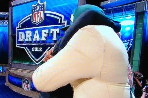 The Philadelphia Eagles climbed into the draft’s 12th position to select defensive tackle and soon-to-be connoisseur of all things Wide 9, Fletcher Cox. Upon reaching the stage, Cox unleashed a clingy, but impressive hug of NFL commissioner Roger Goodell.