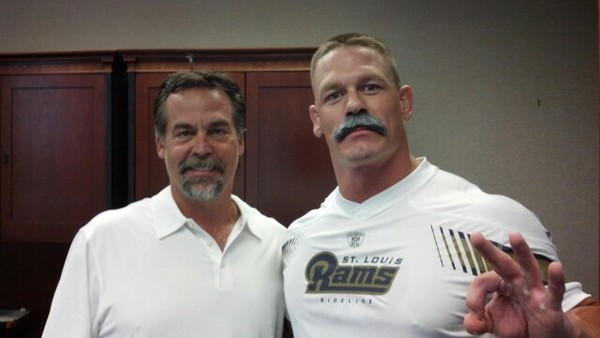 While preparing for tonight’s 1,000th episode of WWE’s Monday Night Raw (which emanates from St. Louis), John Cena paid a visit to St. Louis Rams head coach Jeff Fisher.