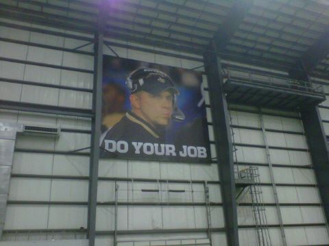 A large sign of Payton hangs in the building with the Belichickian phrase “Do Your Job” in large letters below his picture.