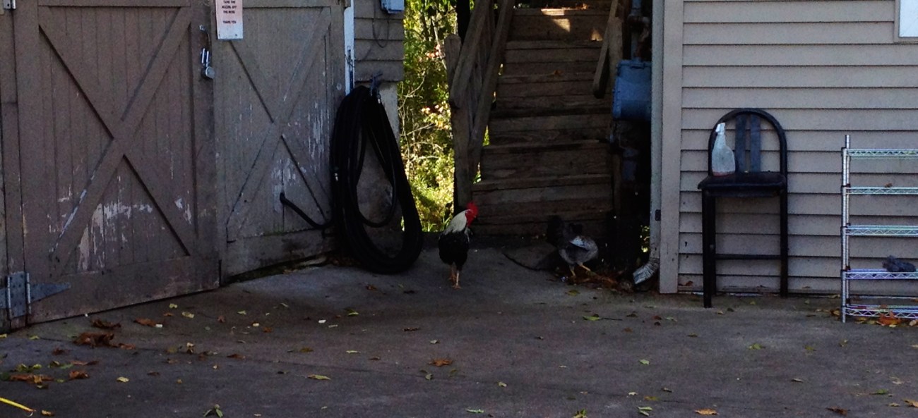A loud, constant crowing from a rooster began soon after I exited the car.