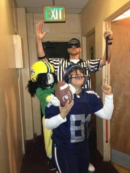 I’m pretty sure this picture of a replacement ref with a doll with dreadlocks and some kid playing Golden Tate won Halloween.