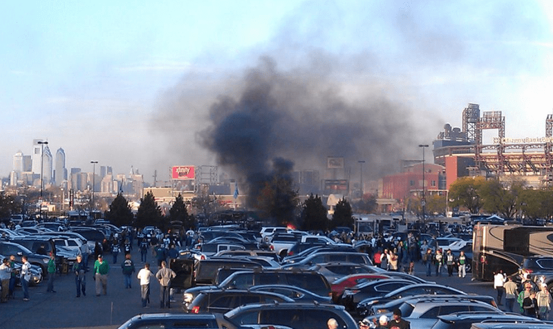 If there was a pregnant woman and a puppy inside that flame-engulfed car, Eagles fans may have trumped the efforts of Raiders and Dodgers fans in terms of making their parking lots post-apocalyptic.
