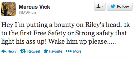 Of course, Marcus Vick deleted the tweets after common sense (or big brother) prevailed. Vick claims his Twitter was hacked.