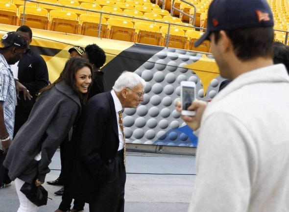 Prior to the game, Bears superfan Ashton Kutcher and girlfriend Mila Kunis decided to photobomb a picture featuring Steelers chairman Dan Rooney.