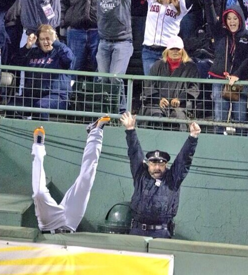 The first (featured above) shows Hunter falling into the Boston bullpen after trying to make a stab at Ortiz’s homer.