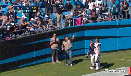 As Long headed back to the locker room, a fan threw a bottle in his direction and it appears the Ram returned the favor by offering up a middle finger.