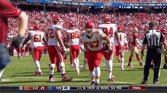 Kansas City Chiefs tight end Travis Kelce what most red-blooded Americans should do after scoring a touchdown…strut like Ric Flair.