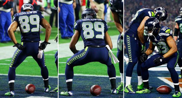 Baldwin told ESPN 710 in Seattle that his celebration was directed at New England’s all-universe cornerback Darrelle Revis, who covered the disgruntled pass catcher during Super Bowl XLIX.