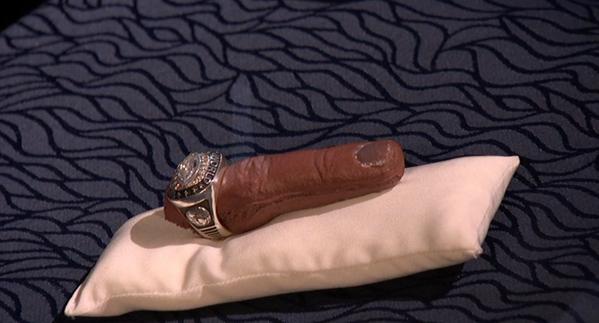 McHale made reference to New York Giants defensive end Jason Pierre-Paul’s firecracker accident. After introducing him to the audience, a camera panned to a detached finger with a Super Bowl ring on it.