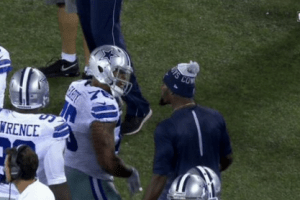 Dallas Cowboys defensive end Greg Hardy was caught on camera getting into it with Dez Bryant during Sunday’s Cowboys/Giants tilt. However, the story as to why Bryant was chirping to Hardy may be what causes a ruckus in Dallas this week.