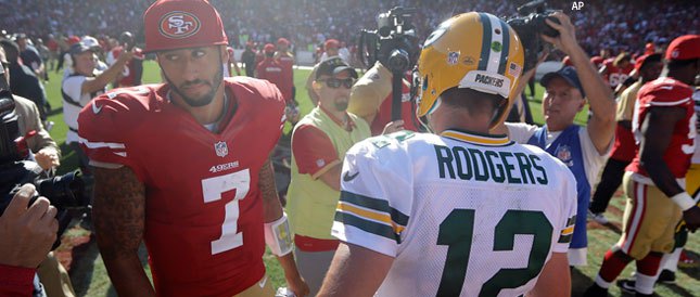 During today’s 17-3 loss to the Green Bay Packers, 49ers quarterback Colin Kapernick endured another rough outing. The embattled signal-caller finished 13 of 25 for 160 yards and an interception.