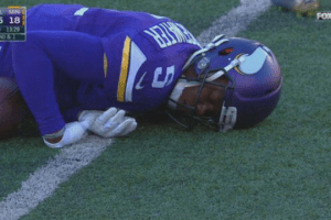 The Minnesota Vikings topped the St. Louis Rams in a 21-18 overtime victory on Sunday but the victory came with a cost. Vikings quarterback Teddy Bridgewater was knocked out cold from an elbow by Rams safety LaMarcus Joyner during a second half scramble.