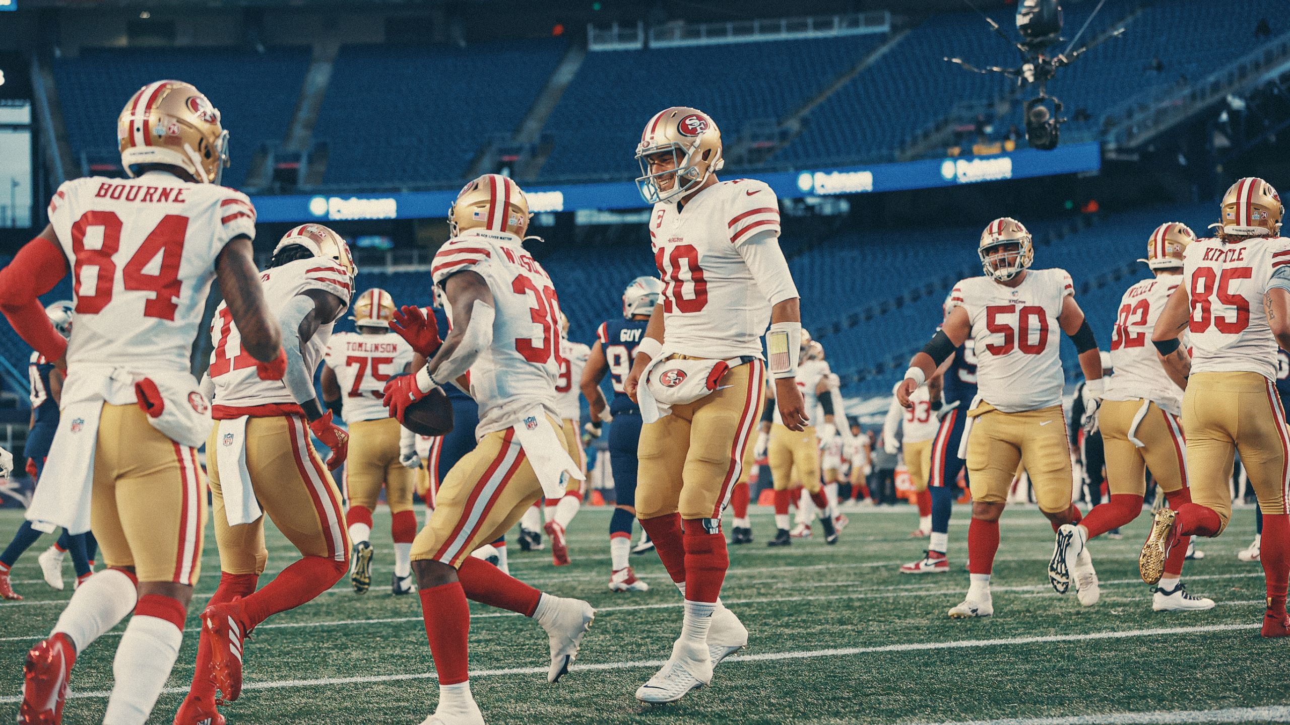 The 49ers steamrolled the Patriots by 27 points in Foxbough and thoroughly crushed Bill Belichick’s crew on both sides of the football. San Francisco’s balanced attack stole the show, which nearly amassed 500 yards of offense. They pushed around the Patriots in their building – a rarity.