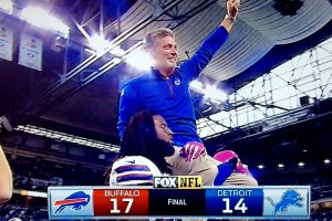 Buffalo Bills kicker Dan Carpenter booted a 58-yard field goal with seconds remaining to give the 3-2 Bills a 17-14 win over the Detroit Lions. Perhaps the real highlight came in the game’s ensuing moments. After the Bills sealed up a victory, the team carried ex-Lions head coach […]