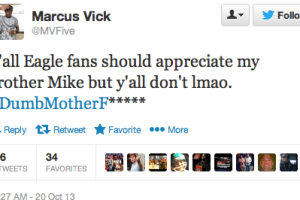 Marcus Vick, brother of injured quarterback Michael Vick, is not enjoying Sunday’s Cowboys/Eagles tilt. With Dallas leading 3-0 entering halftime, the NFC East battle is not capturing the excitement of the younger Vick.