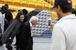 The Pittsburgh Steelers continued their freefall from the NFL’s elite last night in a 40-23 drubbing at the hands of the Chicago Bears. Prior to the game, Bears superfan Ashton Kutcher and girlfriend Mila Kunis decided to photobomb a picture featuring Steelers chairman Dan Rooney.
