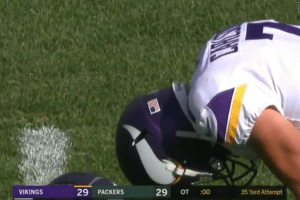 Minnesota Vikings kicker Daniel Carlson might be Public Enemy #1 with Vikes fans for the next few weeks after he missed three field goals including two potential game-winners against the Green Bay Packers in a 29-29 tie.